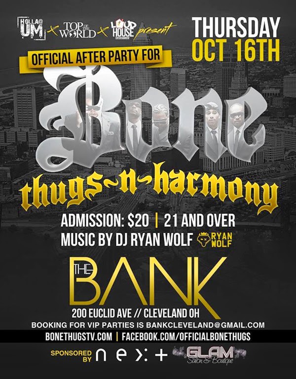 Bone Thugs Live in Cleveland, Ohio: Oct. 16, 2014 September 27, 2014 - by Admin Bone Thugs Live in Cleveland, Ohio: Oct. 16, 2014 Read More